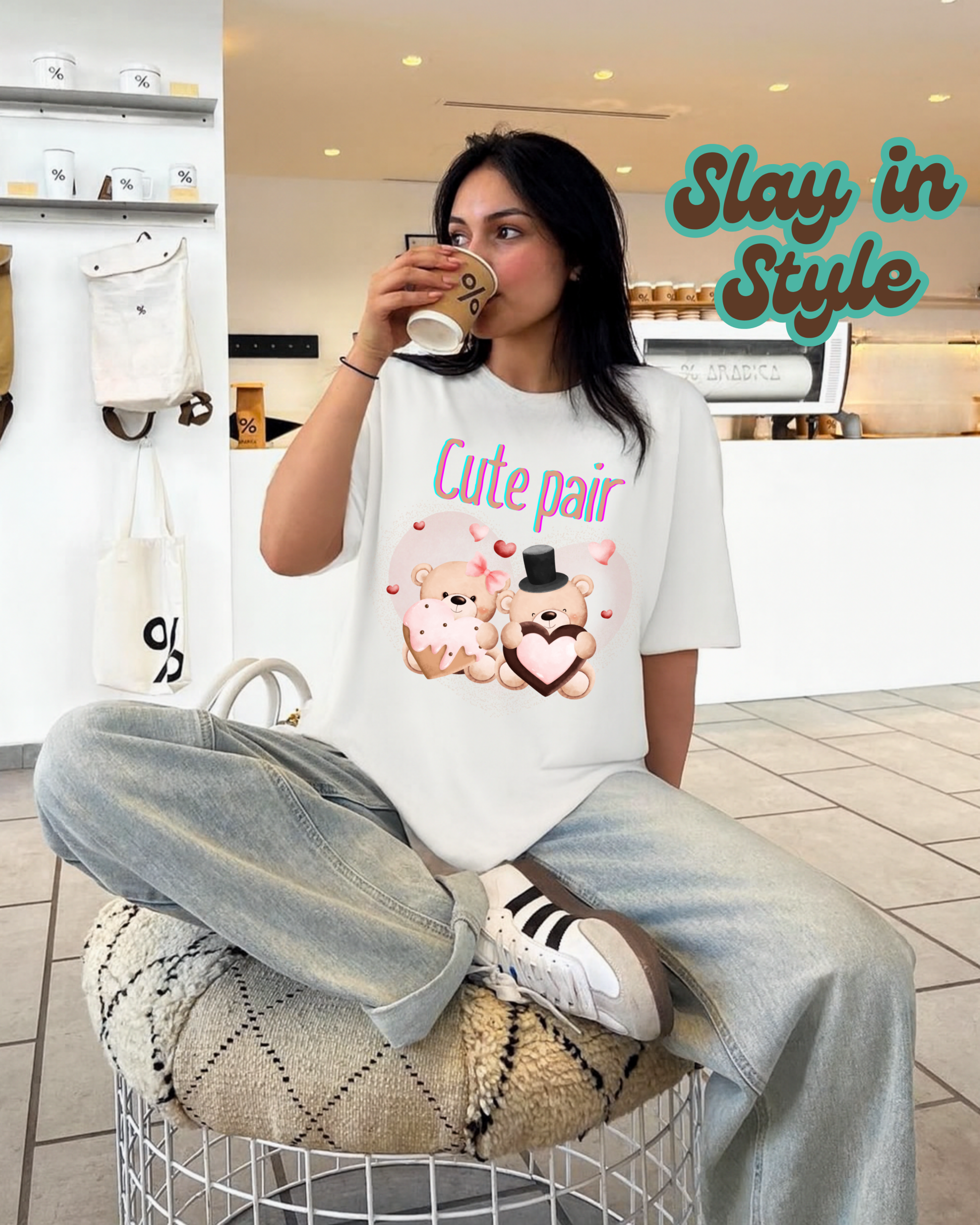 Introducing the βCute Pairβ Premium Oversized T-Shirt, crafted for those who believe in matching vibes and timeless bonds